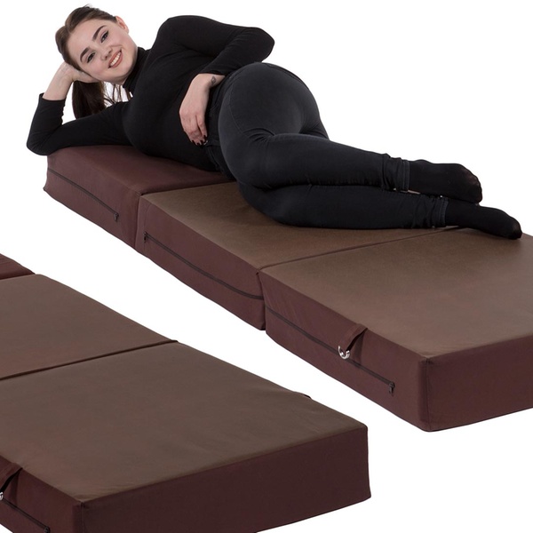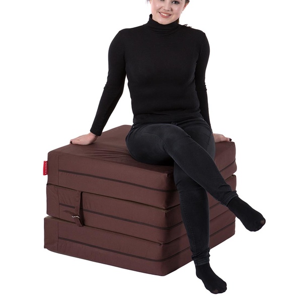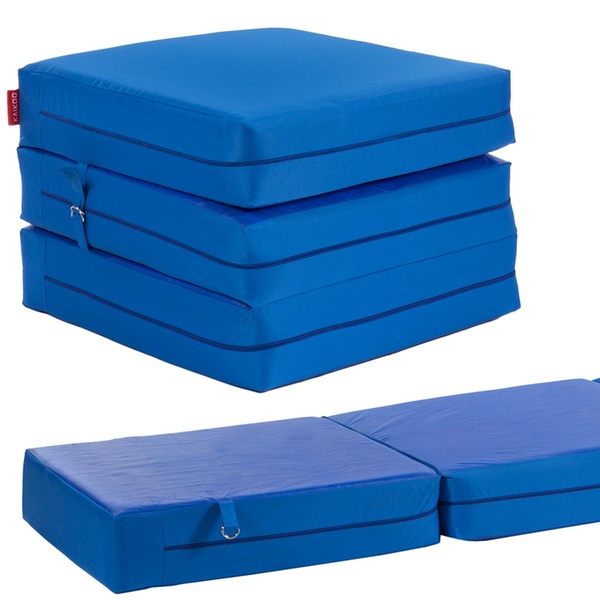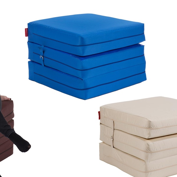 This three-way foldable bed features a lightweight design that is easy to carry and is also usable as a comfortable seat