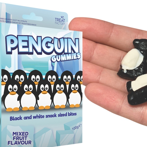 - Penguin gummies feature mixed fruit flavour
