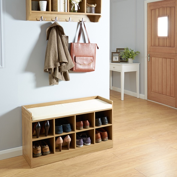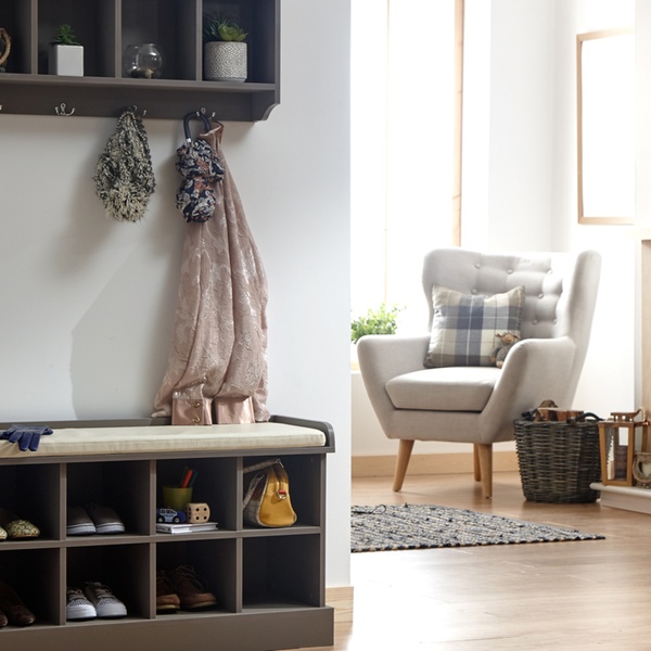 Available in three stylish colours, this shoe bench and wall rack can be used separately or together as practical hallway storage solutions