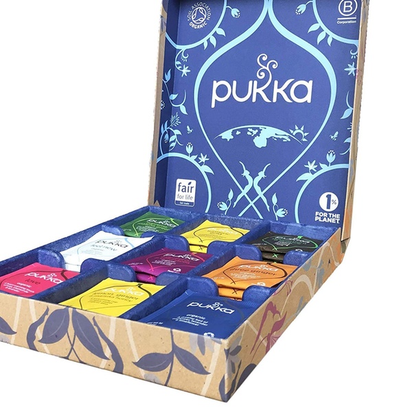 Elderberry & Echinacea: Licorice root, ginger root, echinacea root and leaf (10%), beetroot, aniseed, elderflower (8%), peppermint leaf, orange peel, rosehip, elderberry (6%), acerola fruit, orange essential oil flavour, natural blackcurrant flavour