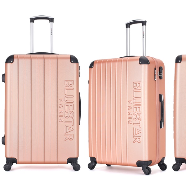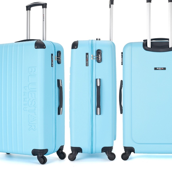 - Large and weekend suitcases have two reinforced handles, high and lateral