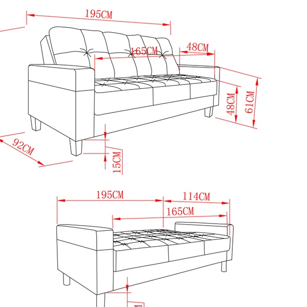 - Sofa dimensions: 195cm (W) x 92cm (D) x 92cm (H)