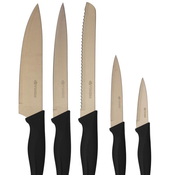 Featuring ergonomically-designed handles and sharp stainless steel blades, this knife block set makes a practical addition to a busy kitchen