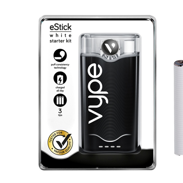 - Vype eStick ecigarette Starter Kit White with 3x refills, Blended Tobacco Regular, Wall Plug & 2nd eStick battery, 12.5mg Nicotine