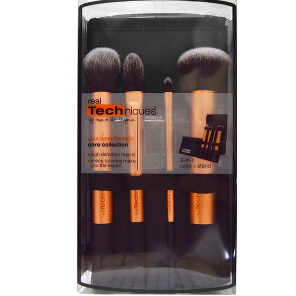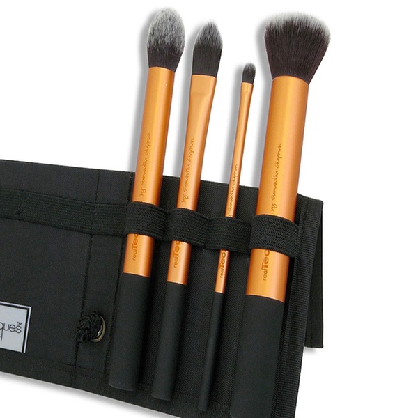 - Includes four coverage essentials: detailer brush, pointed foundation brush, buffing brush and contour brush