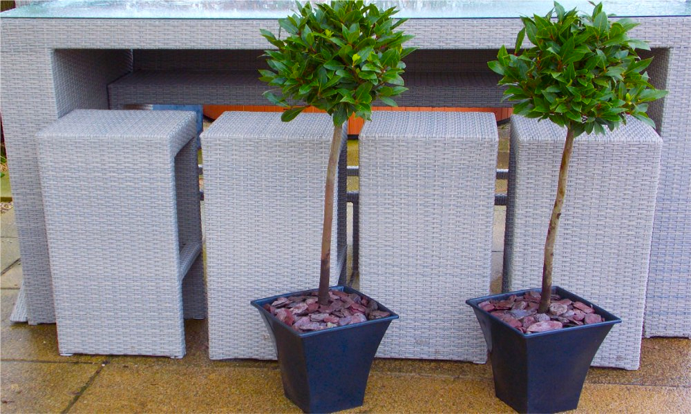 With a full head of foliage and flavoursome bay leaves, these trees are supplied in rot-resistant planters to adorn patios and entrances