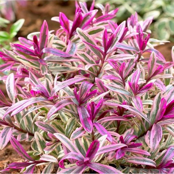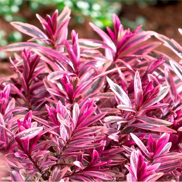 Making a striking addition to patios and gardens, these plants feature cream-edged leaves and turn a vibrant pink colour in winter