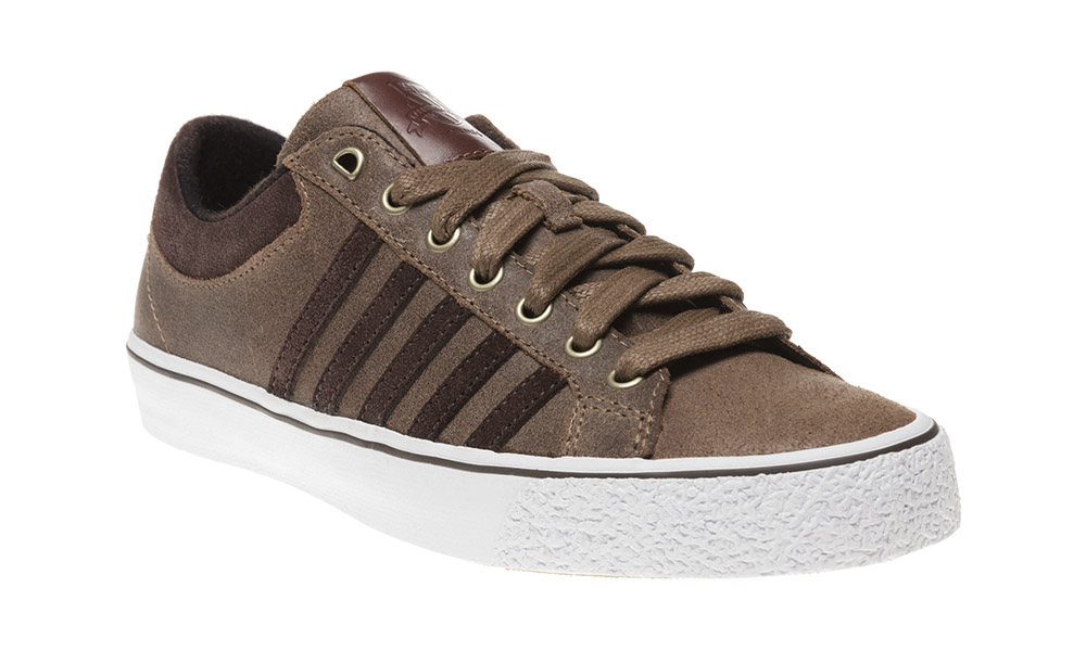 - K-Swiss men's suede trainers in black, light grey and red or leather in brown