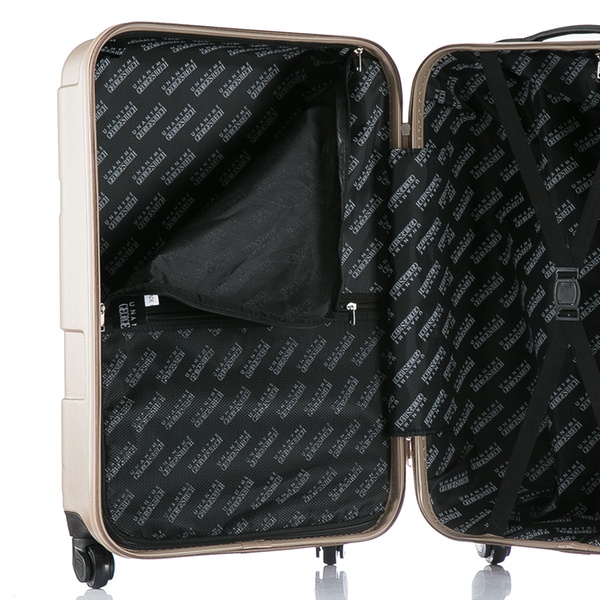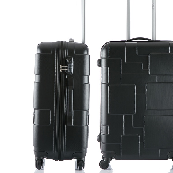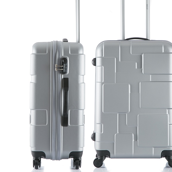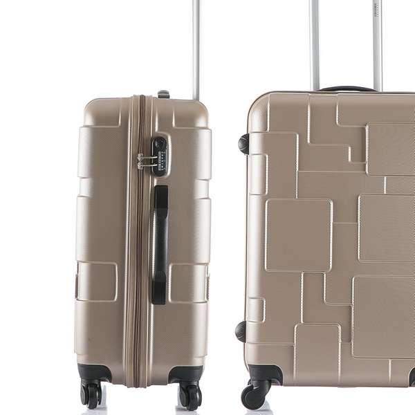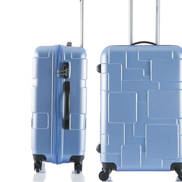 - Each suitcase has a flat, push button aluminium telescopic handle