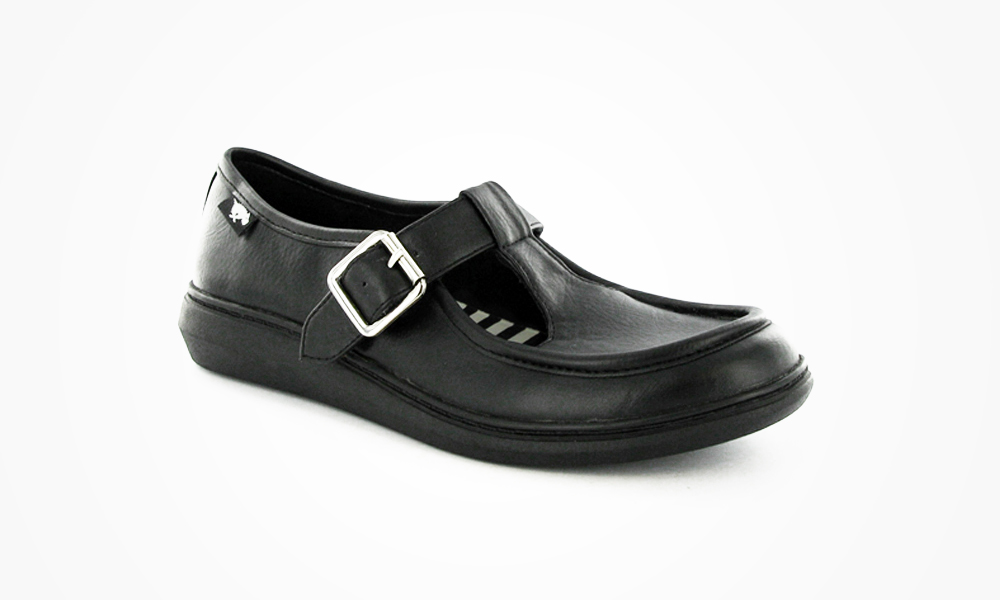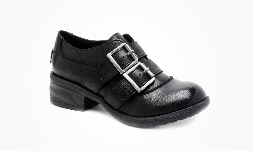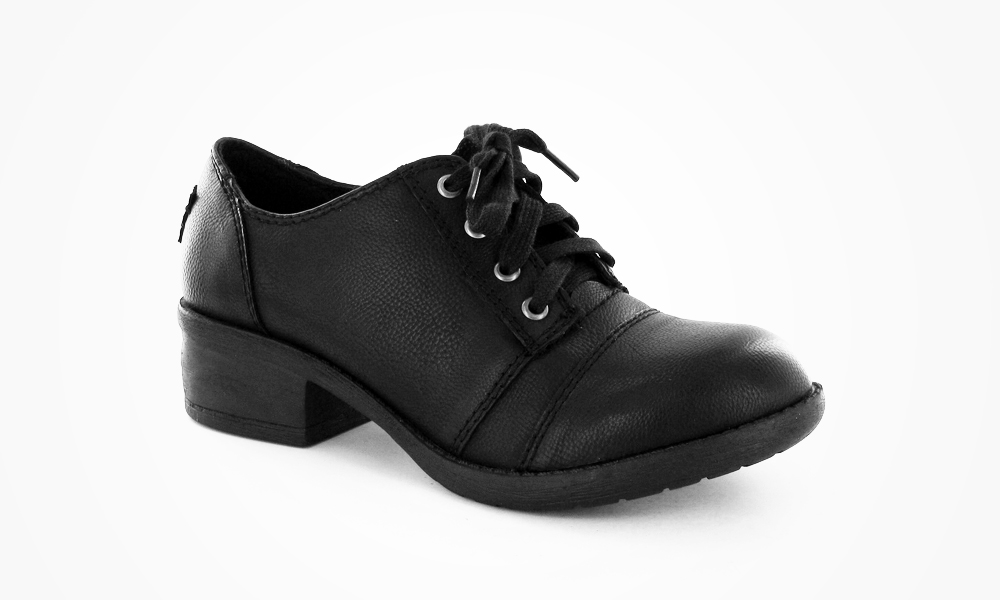 - Designs include flat Mary Jane-style shoe and lace-up boots with small heel