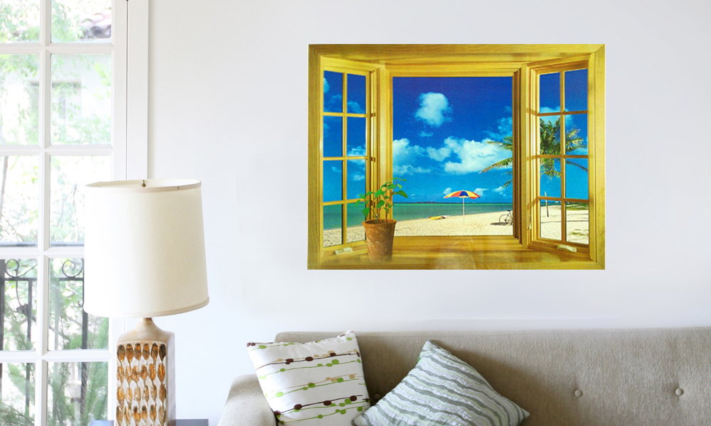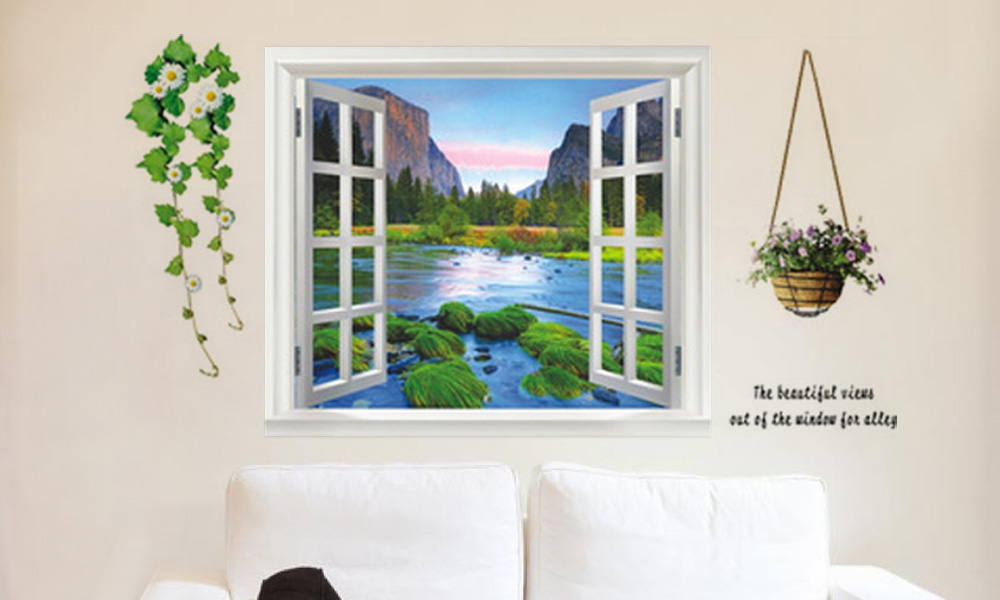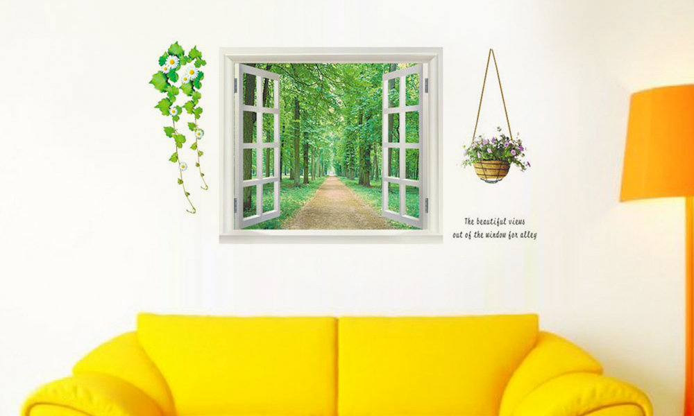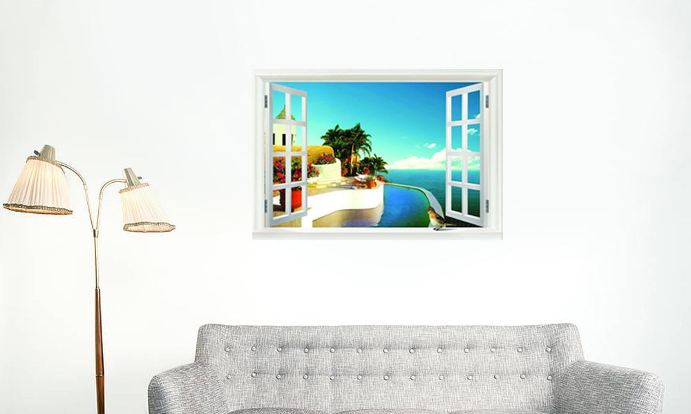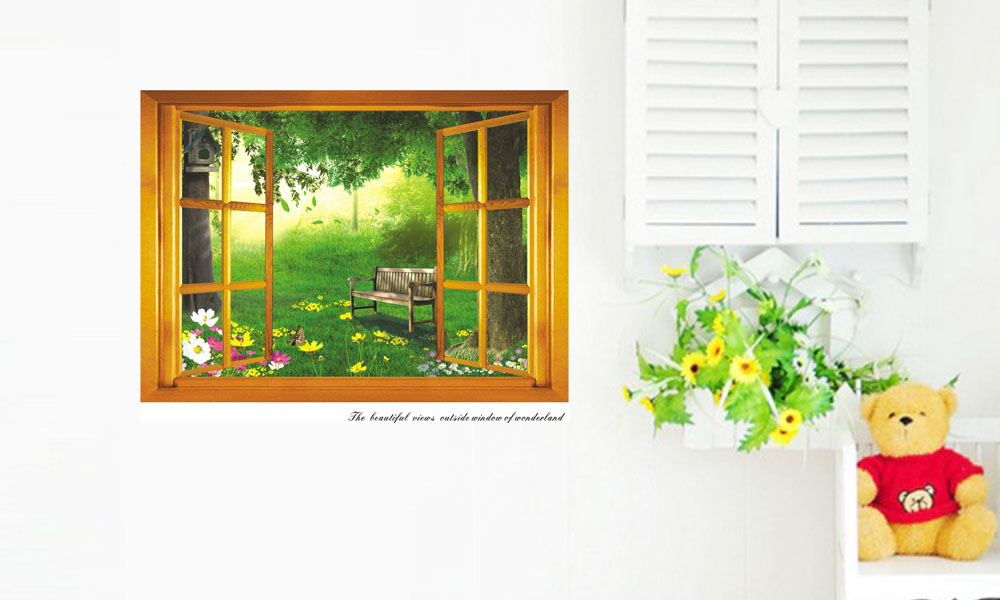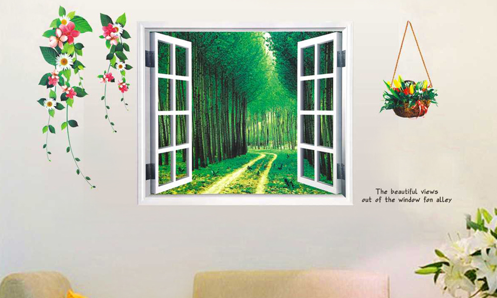 - 3D self-adhesive wall stickers in decorative open window designs