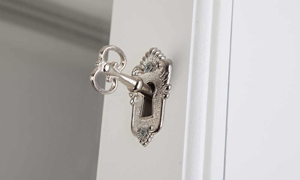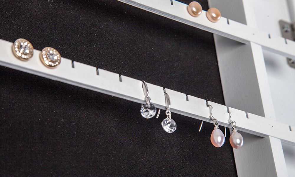 Dainty trinkets and delicate jewels can be kept safe and sound in this MDF cabinet. The inside is covered with soft fabric to cushion owners’ beloved pieces, and the furniture doubles as a standing mirror. The door can be locked with a key to keep the valuables secure.