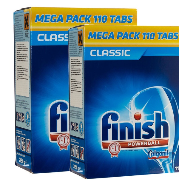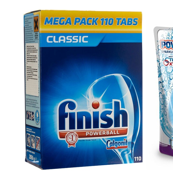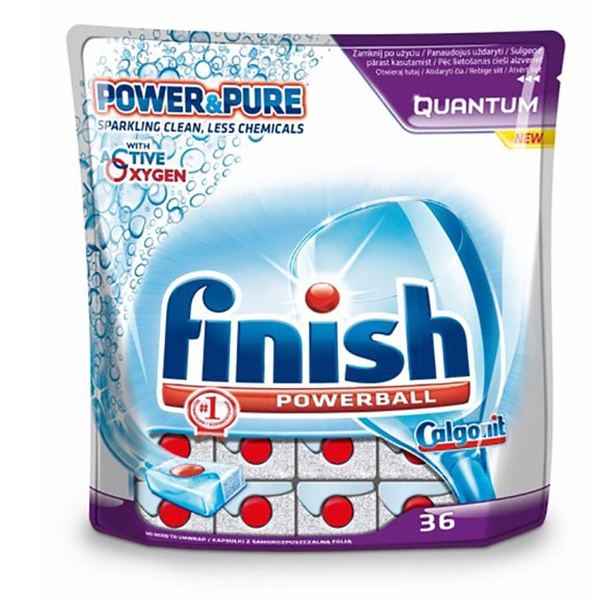 - Line: Finish Quantum Powerball Max Power and Pure dishwasher tabs with calgon