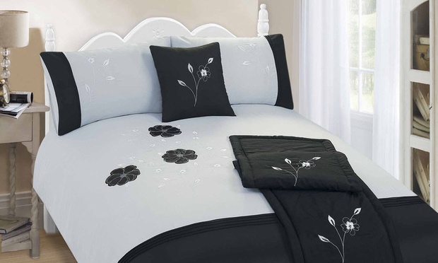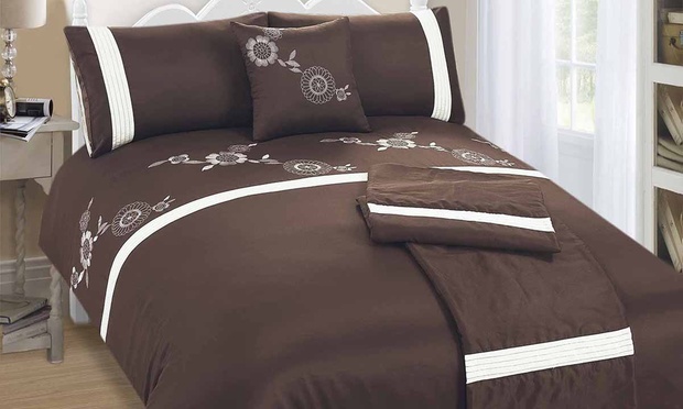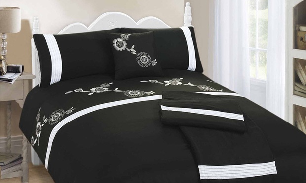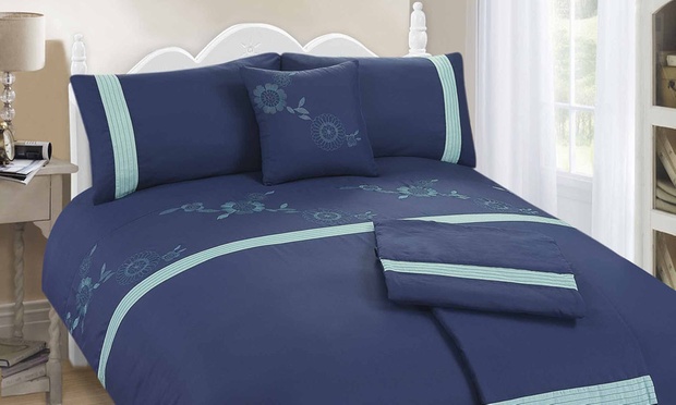 Choose from the following options for an embroidered five-piece bed set.