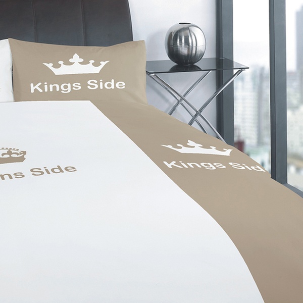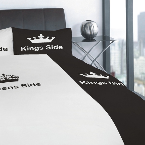 - Duvet set with ‘His & Hers’ design that reverses to show ‘Queens Side & Kings Side’