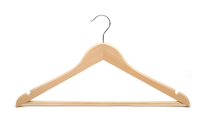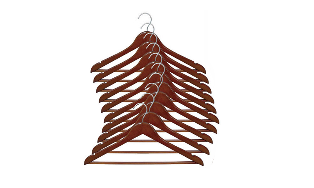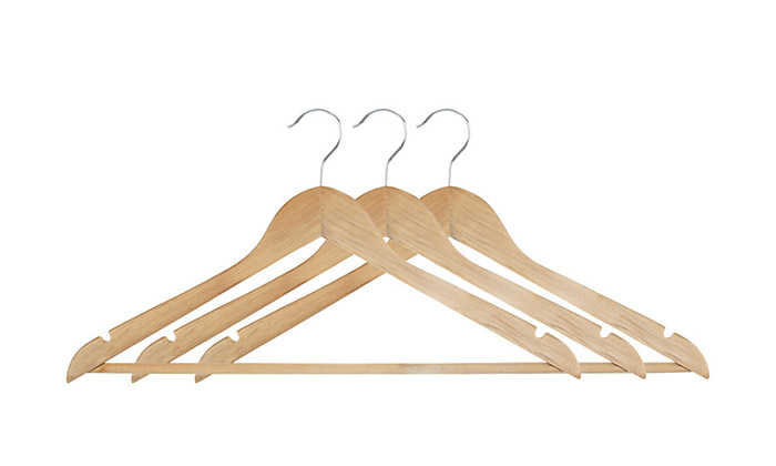 Sturdy wooden hangers to keep coats, trousers and skirts looking crisp