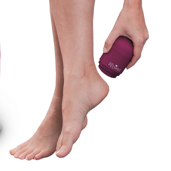 Pedi Pro Deluxe is a pedicure treatment that fits in the palm of your hand. This electronic personal body care system has a high-speed rotating head, with hundreds of ultra-fine micro-crystals. The head quickly, but gently, removes dead and hard calloused skin, while exfoliating and revitalising feet.