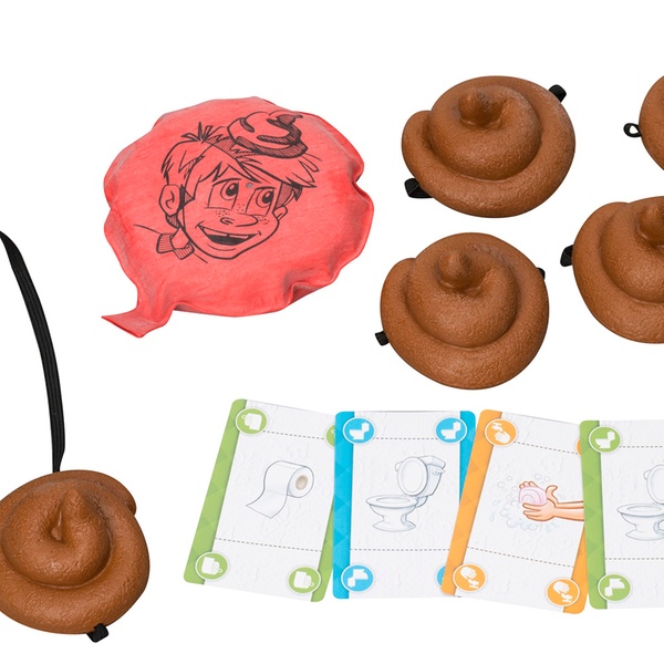 Players have a frantic rush to place their cards on the card stack, but they must place them in the right order: Toilet - Poo - Paper - Wash your hands. If a player cannot play a card, he or she immediately pushes the whoopie cushion. Now, whoever has the most cards left, will need to place a poo on his head. After 5 games, the player with the most poo on his head loses!