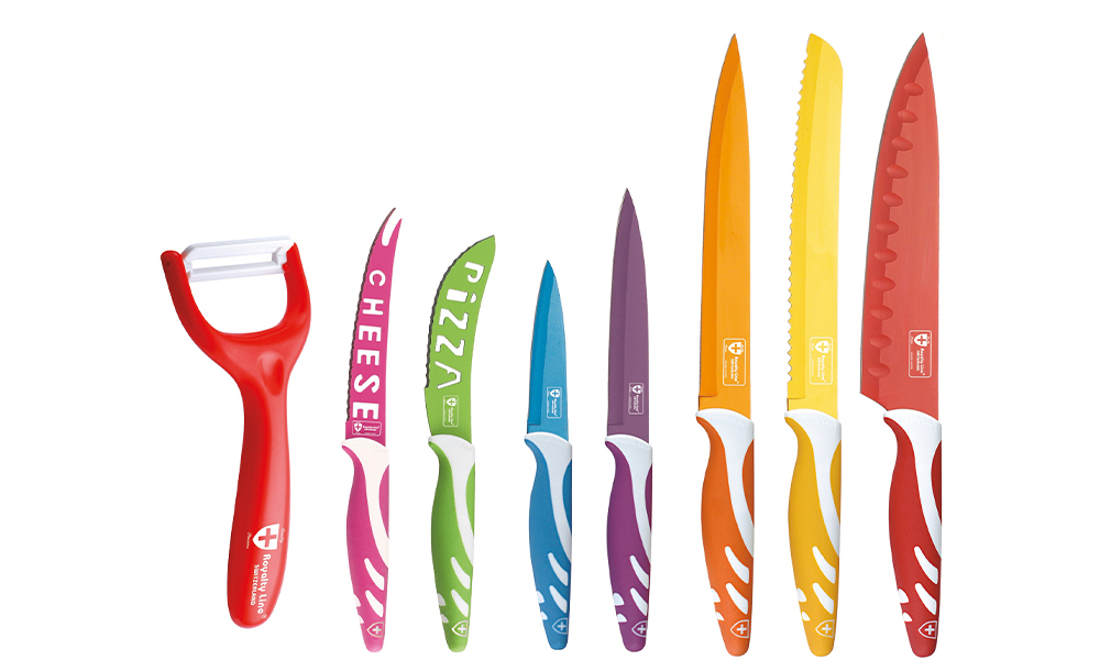 Choose from the following options for seven-piece Swiss Royalty Line coloured knife set: