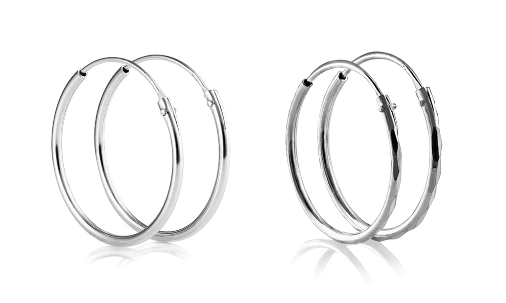 Outfits can be accessorised with these hoop earring sets, featuring plain and diamond cut designs, with the option to include a luxury box