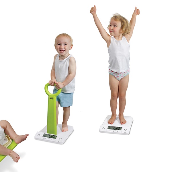 This bathroom scale features PC software and height chart to track the growth and development of up to 4 children