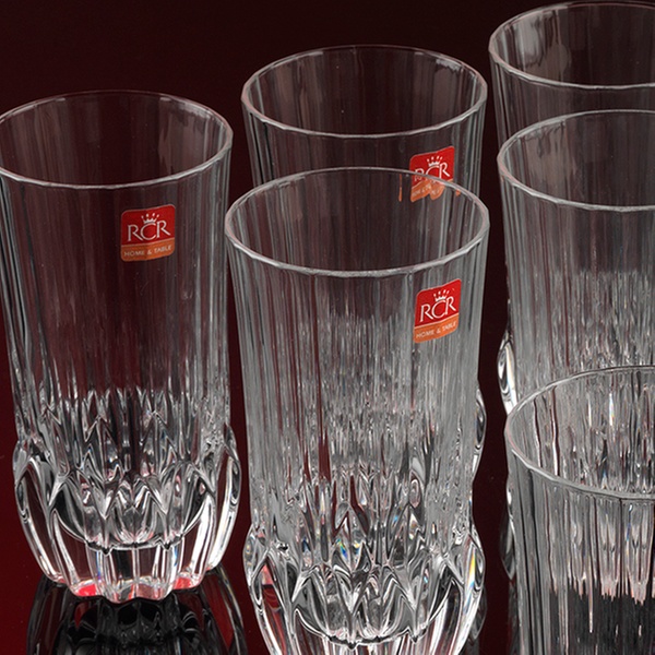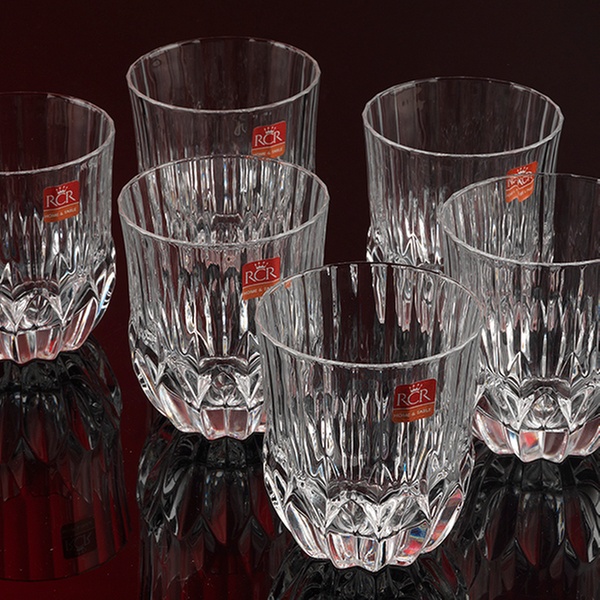 Choose from the following options for six or twelve RCR Crystal Adagio whiskey or highball tumbler glasses: