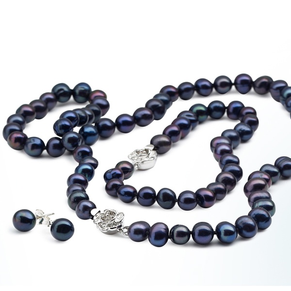 Choose from the following options for a semi-baroque pearl jewellery set in black: