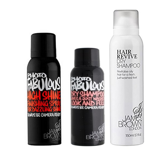 Choose from the following options for a James Brown hair revive dry shampoo 150ml or Photo Fabulous dry shampoo with finishing spray: