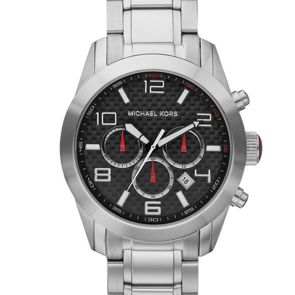 - £135 for silver stainless steel and black chronograph watch - MK8218 (44% off)