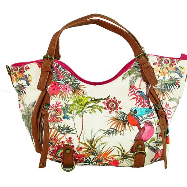 Carry your belongings in these Desigual bags featuring additional inside compartments; come in a variety of 27 styles with bold patterns