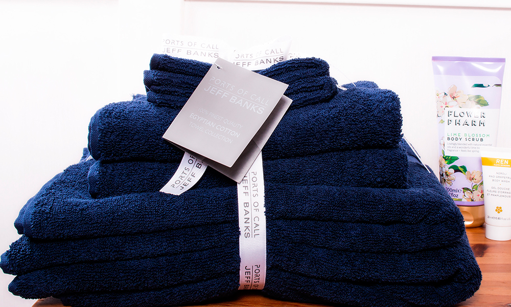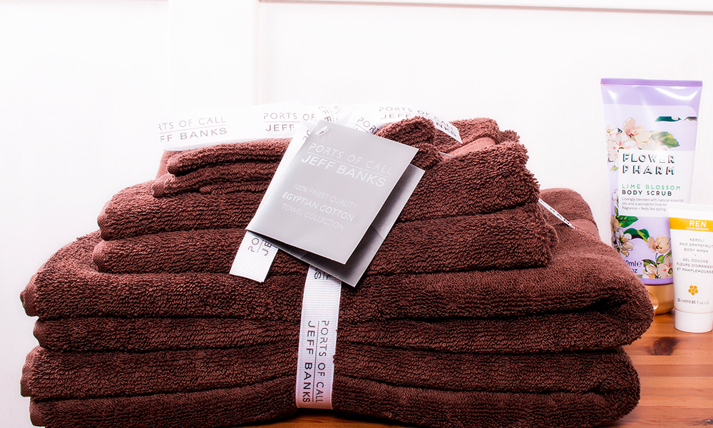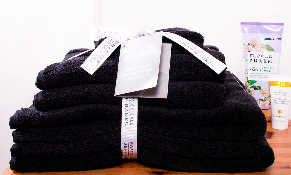 Choose from the following options for Jeff Banks Egyptian cotton towel sets in black, white, cream, lilac, navy or chocolate.