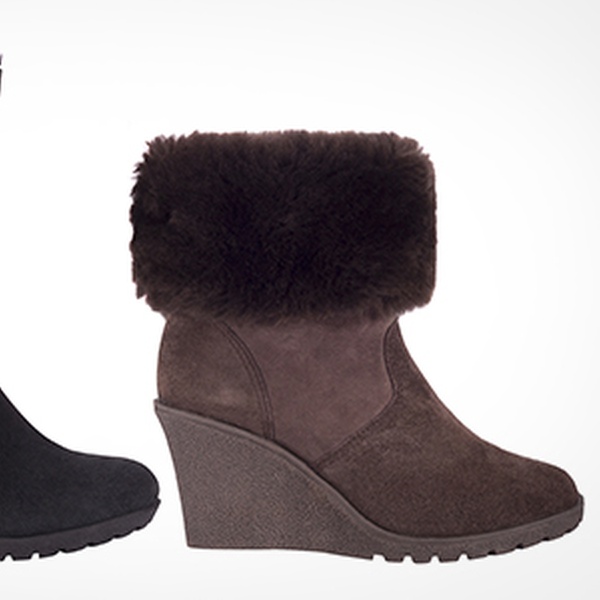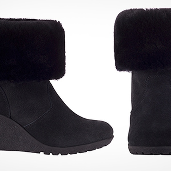 These Australian sheepskin boots have a feature that enables the top to be folded over and buttoned down for various looks. A sheepskin lining can keep feet warm in the winter and the wedge style means that they can be dressed up or down. The boots are available in black and brown, ranging from sizes 3 - 8.