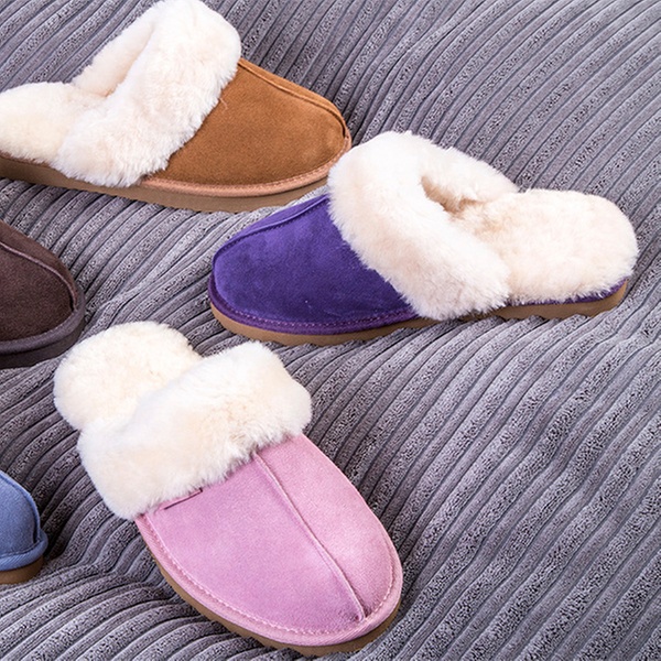 - Warm sheepskin-lined slippers