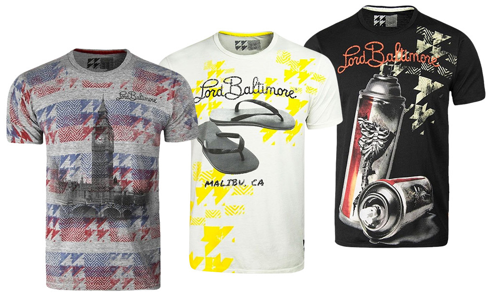 Grey/Red ‘Big Ben’ T-Shirt, White/Yellow ‘Malibu Flip-Flop’ T-Shirt, and Black ‘Spray Time’ T-Shirt