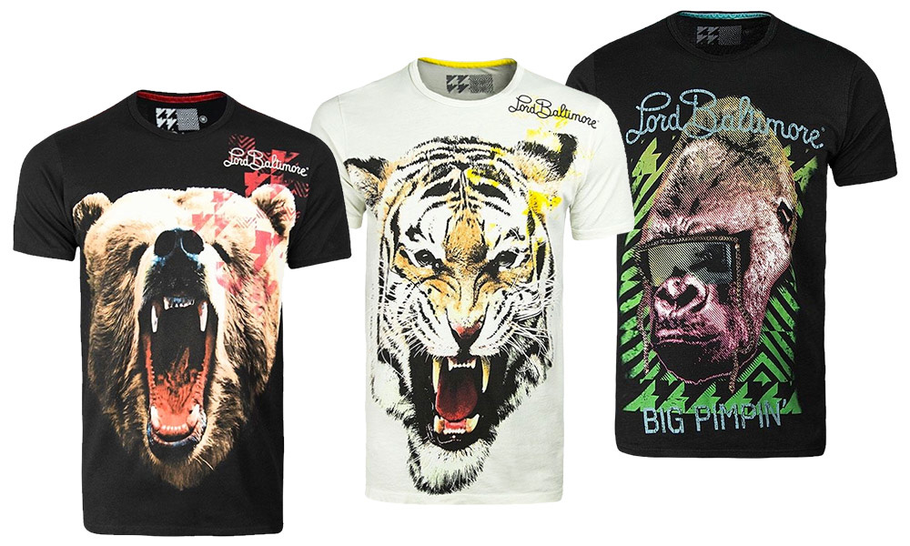 Black ‘Grizzly Bear’ T-Shirt, White ‘Tiger’ T-Shirt, and Black ‘Big Pimpin Gorilla’ T-Shirt