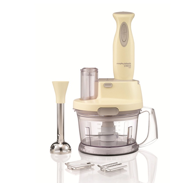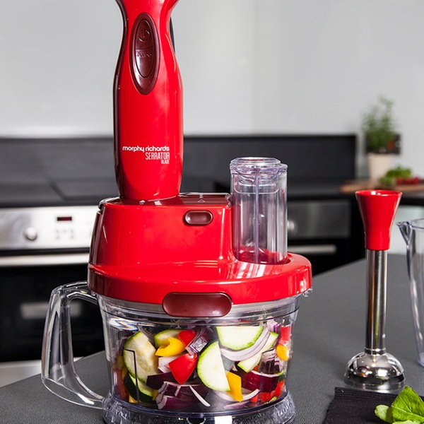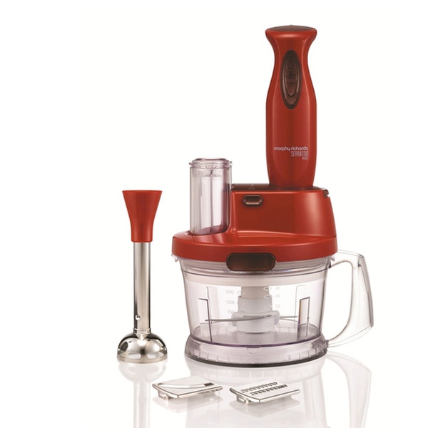Today’s Groupon offers a Morphy Richards hand blender work station in red or cream: