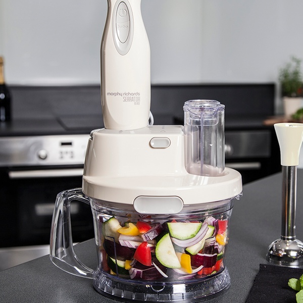 These handy blender work stations will cut food items down to size with their 700W motor and carefully developed Serrator blades. The blender has a heat-resistant blending leg, ideal for blending soups in the pan plus chopping and slicing blades for a multitude of tasks. The compact design is easy to stow away and comes in a choice of red or cream.