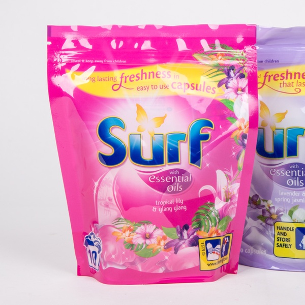 These Surf detergents come in Tropical Oasis or Lavender fragrances and are available in either 60 or 120 capsules