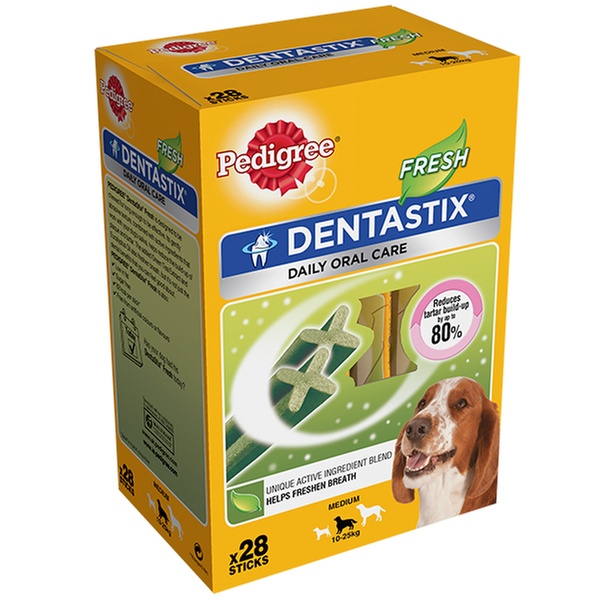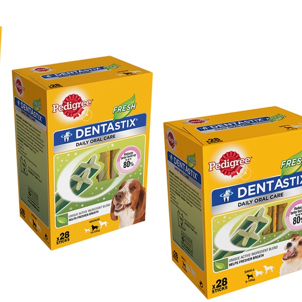 For big and small lovely pooches, these Pedigree Dentastix Fresh sticks help reduce the build-up of plaque and tartar