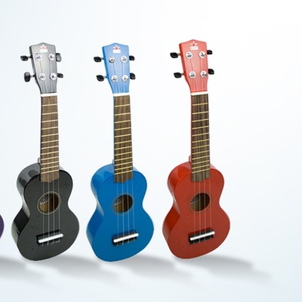 Choose from the following options for a Red Star ukulele and bag, in black, blue red or purple: