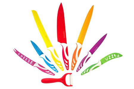 - Knives: kitchen, universal, bread, slicing, utility, pizza, cheese and a peeler