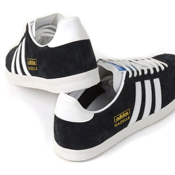 These Adidas trainers feature an athletic, streamlined shape; soft suede contrasts with gleaming white rubber soles and matching laces