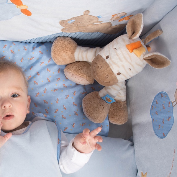 - Offers an appropriate level of stimulation such as crinkle and rattle noises and different hanging toys