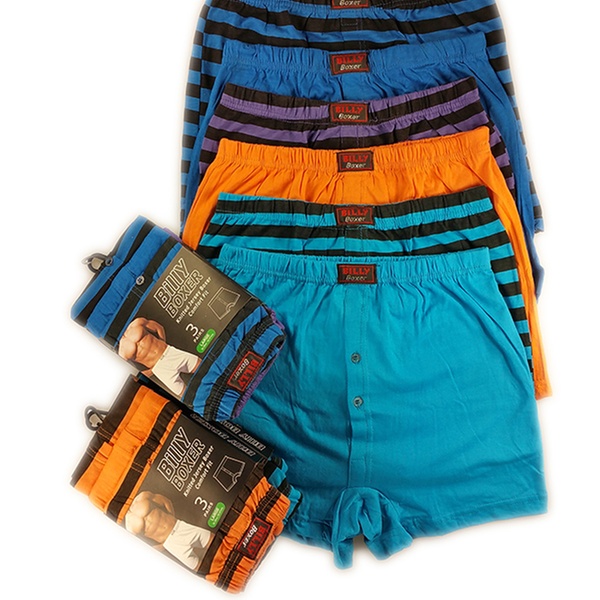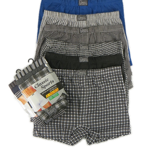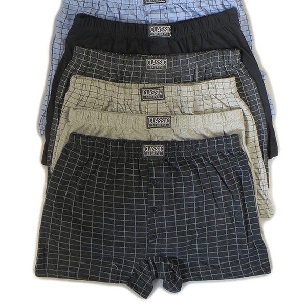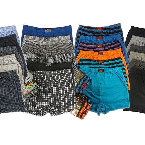 Choose from the following options for a 6-pack or 12-pack men’s cotton rich boxer shorts: