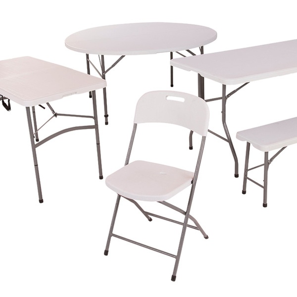 - £29.98 for 4ft fold-in-half table, 6ft folding bench or a pair of chairs (50% off)