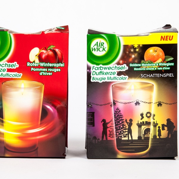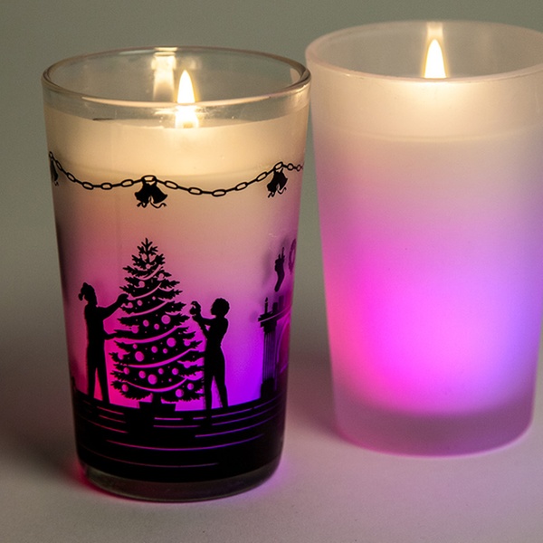 Infused with golden mandarin or red winter apple fragrances, these candles emit a rainbow of colours when lit up