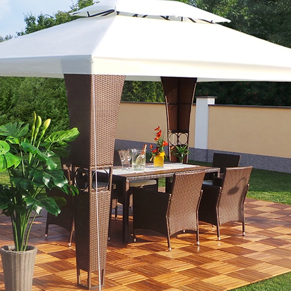 - £219.98 for rattan-effect gazebo in creme/black, creme/brown, anthracite/black or anthracite/brown