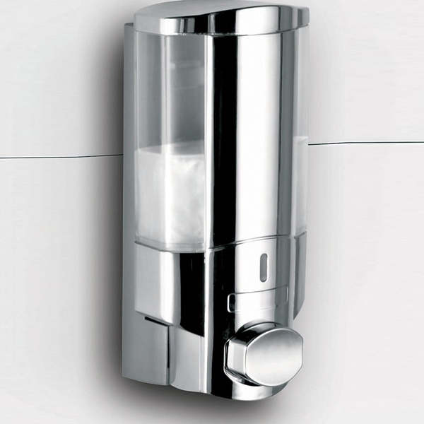 Featuring a chrome finish and shatter-resistant body this dispenser is ideal for liquid soap, shampoo, lotion, or conditioner
