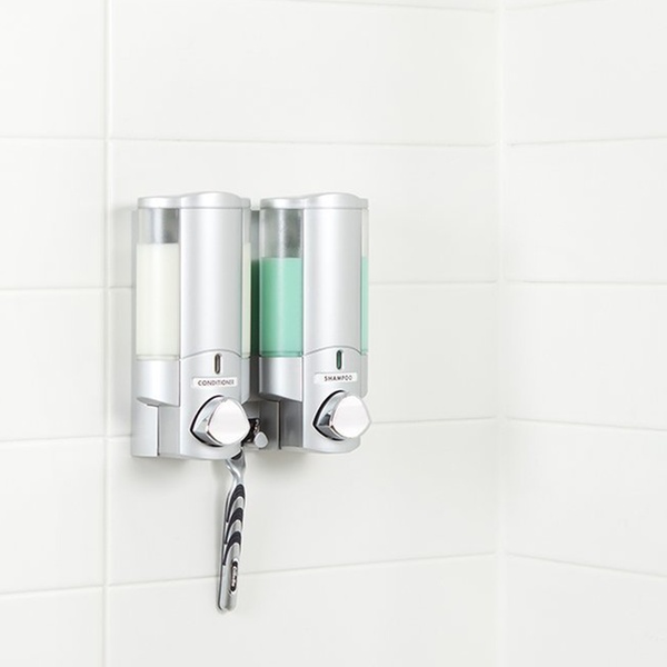 - Dispenses liquid soap, shampoo, lotion, or conditioner