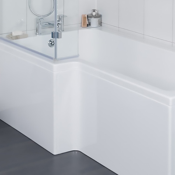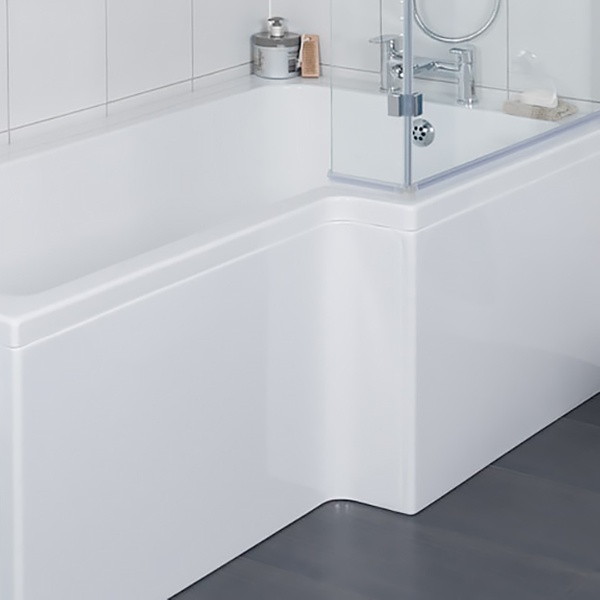 - Live 170cm l-shaped shower bath with glass screen and front panel